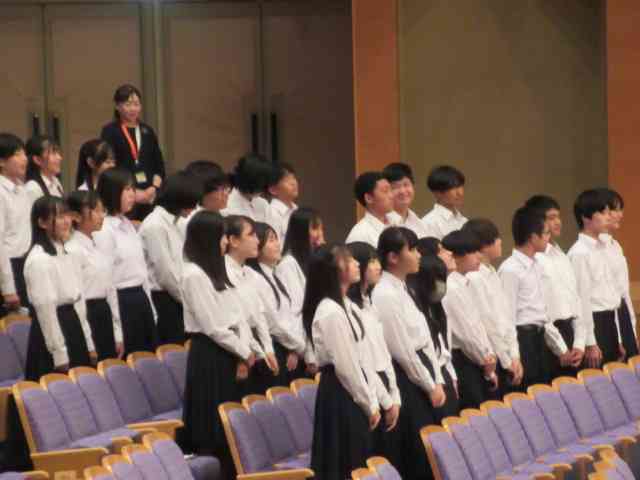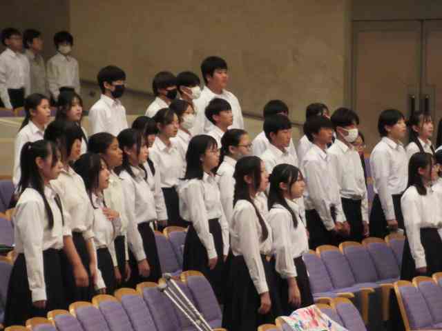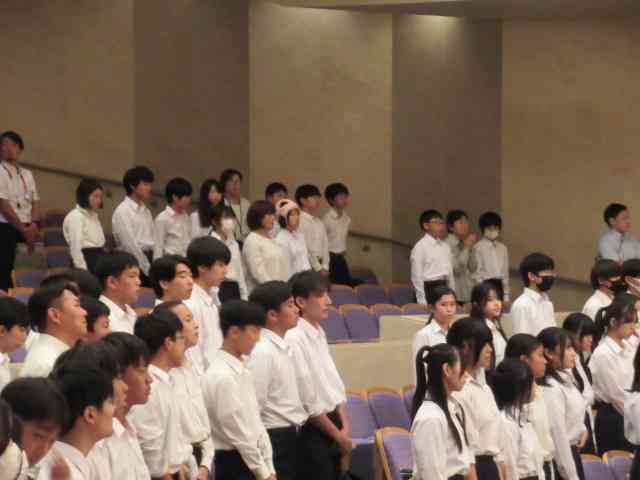 生徒たちが自ら選びます。「一番心の残った合唱は・・・」。 そして閉会式となり、最後に全校合唱です。 新たな形式での文化の部にむけて、皆さん、本当にお疲れさまでした。全クラス・全学年・スピーチそして吹奏楽、もう一度聴きたいです! 素晴らしい文化の部をありがとうございました。