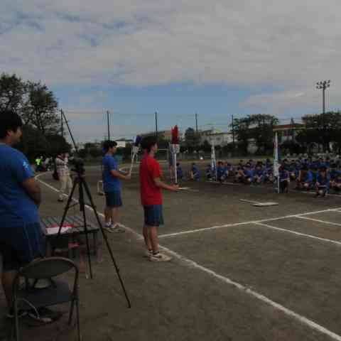 予定通りの時間で開会式が始まり、準備体操のあと競技がスタートしました。 昨日と違い、風の影響を全く受けなくて本当に良かったです。