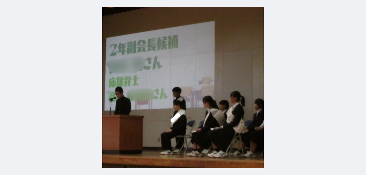 新しい生徒会役員の立会演説会です。 立候補者と応援弁士の皆さんの堂々とした演説はが晴らしかったです。 選挙管理委員の皆さんも、ここまで本当にありがとうございました。