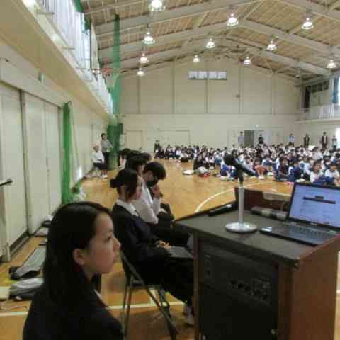新しい生徒会役員の立会演説会です。 立候補者と応援弁士の皆さんの堂々とした演説はが晴らしかったです。 選挙管理委員の皆さんも、ここまで本当にありがとうございました。