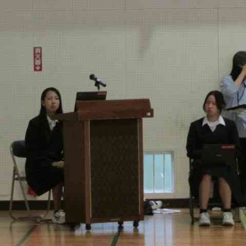 新しい生徒会役員の立会演説会です。 立候補者と応援弁士の皆さんの堂々とした演説はが晴らしかったです。 選挙管理委員の皆さんも、ここまで本当にありがとうございました。