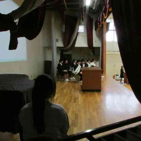 新しい生徒会役員の立会演説会です。 立候補者と応援弁士の皆さんの堂々とした演説はが晴らしかったです。 選挙管理委員の皆さんも、ここまで本当にありがとうございました。