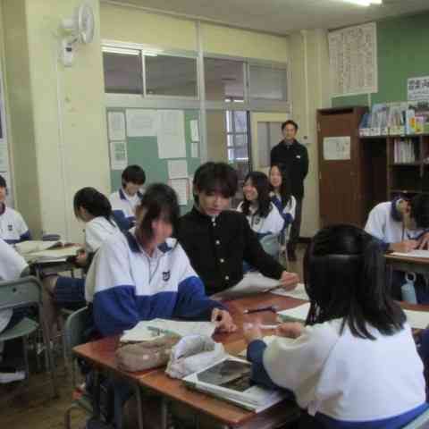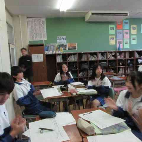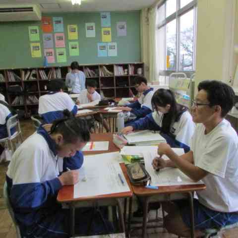 運動とエネルギーについて観察や実験を行ったあと、その結果をグループで分析して解釈し、力学的エネルギーの規則性や関係性を「根拠を明確にして発表する」学習でした。 数学で学んだ2次関数の知識を活用する場面もあり、「学ぶ意義」も再確認できた内容でした。