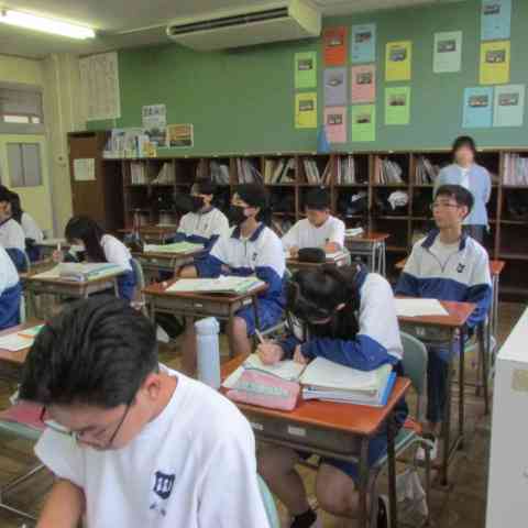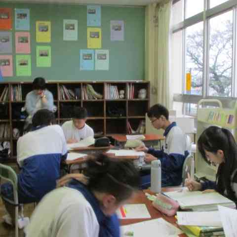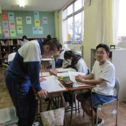 運動とエネルギーについて観察や実験を行ったあと、その結果をグループで分析して解釈し、力学的エネルギーの規則性や関係性を「根拠を明確にして発表する」学習でした。 数学で学んだ2次関数の知識を活用する場面もあり、「学ぶ意義」も再確認できた内容でした。