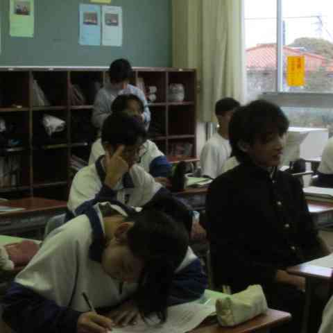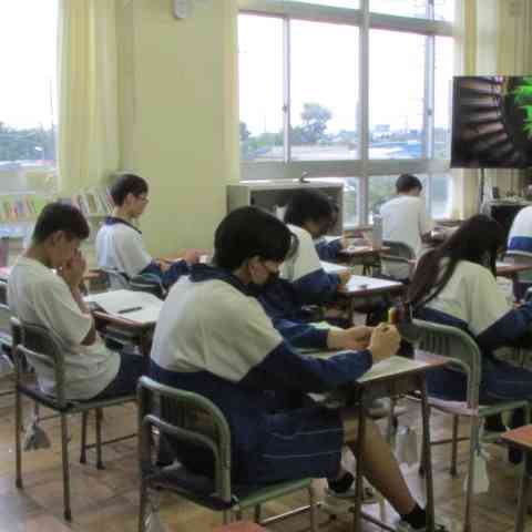 運動とエネルギーについて観察や実験を行ったあと、その結果をグループで分析して解釈し、力学的エネルギーの規則性や関係性を「根拠を明確にして発表する」学習でした。 数学で学んだ2次関数の知識を活用する場面もあり、「学ぶ意義」も再確認できた内容でした。