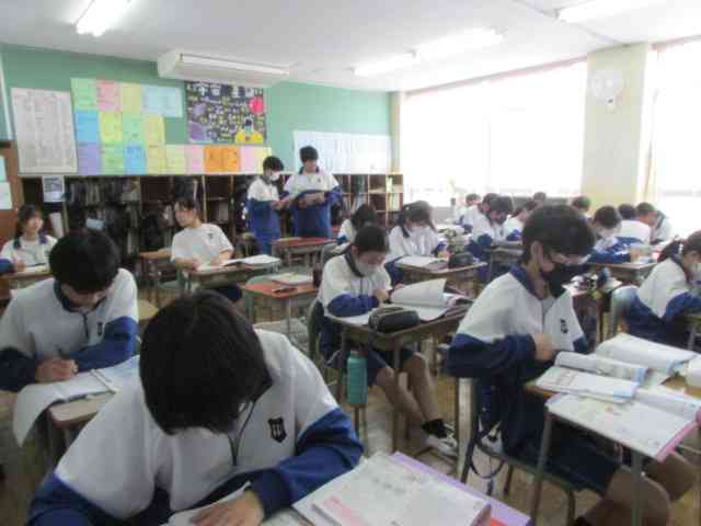 3年生の進路面談の関係で、午前中4時間の授業を行っています。 いつもならお昼の時間・・・あともう少し頑張ってくださいね。