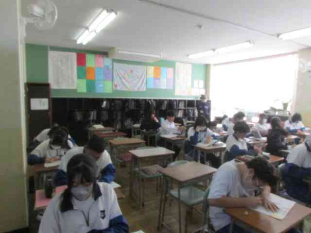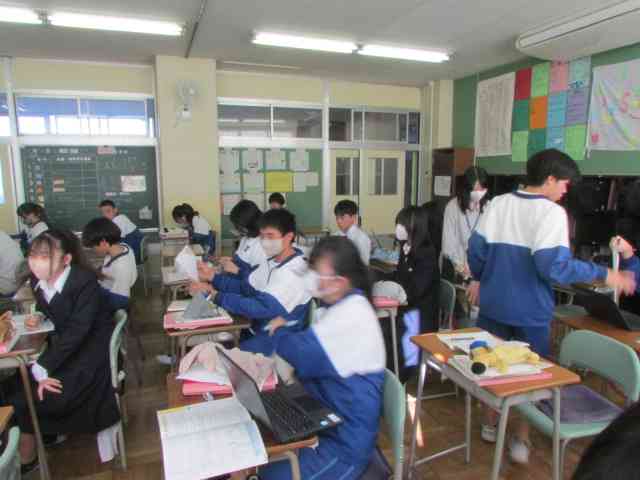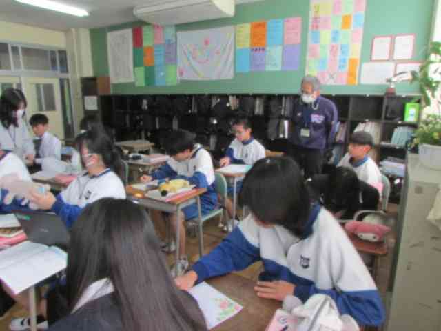先週の職場体験の機会を活用し、お礼状を作成しながら手紙の書き方を学んでいます。