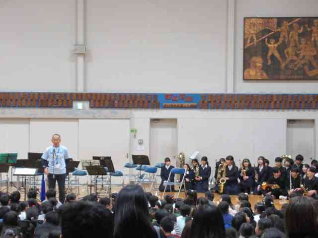 土曜日、若草小50周年行事に本校の吹奏楽部が参加しました。 「K点を越えて」「ヤングマン」の演奏後、大学生とのコラボで「宝島」そして「若草小校歌」を披露しました。若草小の藤田校長先生の直々の指揮のもと、大いに盛り上がりました。 ちなみに若草中は2032年が50周年となります。