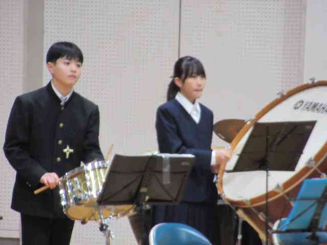 土曜日、若草小50周年行事に本校の吹奏楽部が参加しました。 「K点を越えて」「ヤングマン」の演奏後、大学生とのコラボで「宝島」そして「若草小校歌」を披露しました。若草小の藤田校長先生の直々の指揮のもと、大いに盛り上がりました。 ちなみに若草中は2032年が50周年となります。