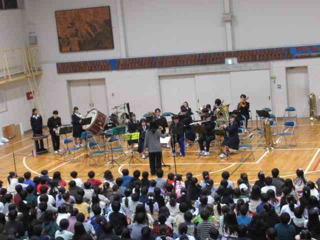 土曜日、若草小50周年行事に本校の吹奏楽部が参加しました。 「K点を越えて」「ヤングマン」の演奏後、大学生とのコラボで「宝島」そして「若草小校歌」を披露しました。若草小の藤田校長先生の直々の指揮のもと、大いに盛り上がりました。 ちなみに若草中は2032年が50周年となります。