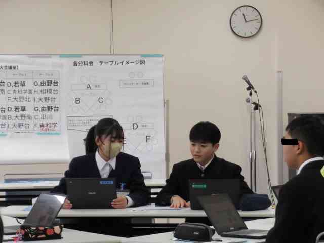 土曜日に相模原市民会館に市内36校の生徒会役員があつまり、自校の取り組みや課題、悩みなどを話し合いました。 本校からは生徒会長と副会長が出席し、積極的に意見交換をしていました。さすがは我が校の代表者の2人です。 より良い学校づくりをぜひ、「主体的」に進めていってくださいね。