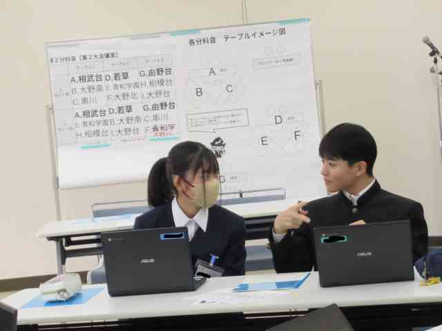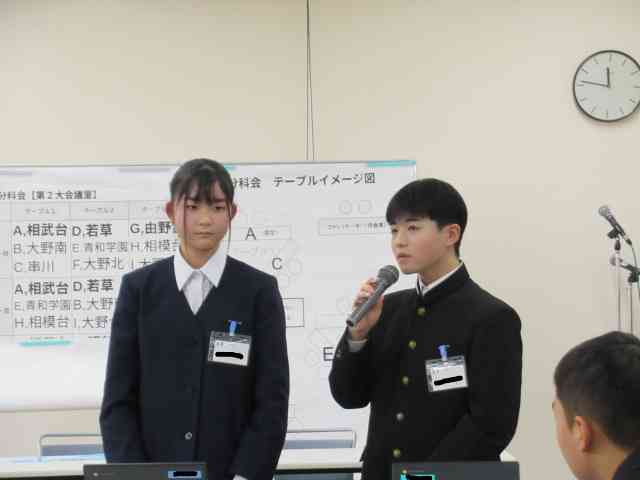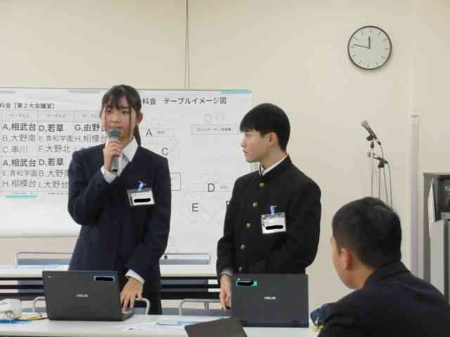 土曜日に相模原市民会館に市内36校の生徒会役員があつまり、自校の取り組みや課題、悩みなどを話し合いました。 本校からは生徒会長と副会長が出席し、積極的に意見交換をしていました。さすがは我が校の代表者の2人です。 より良い学校づくりをぜひ、「主体的」に進めていってくださいね。