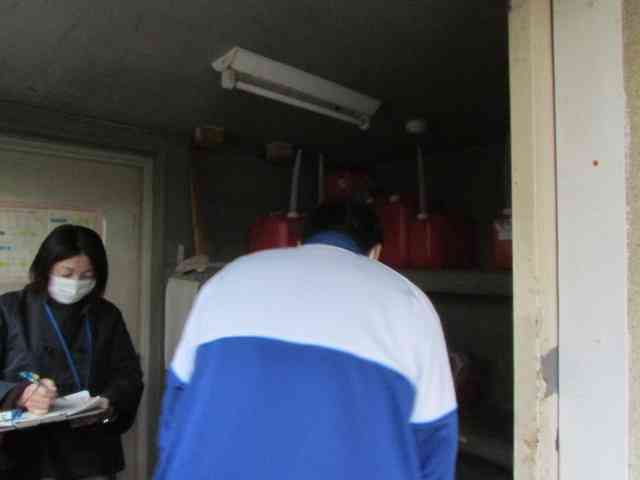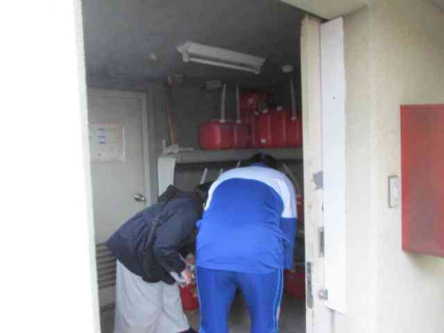 冬場の暖房はエアコンよりも効率よく温まるFFストーブを使用します。本日はその給油日です。 係の皆さん、こぼさないよう慎重に運んでくれて、本当にありがとうございます。