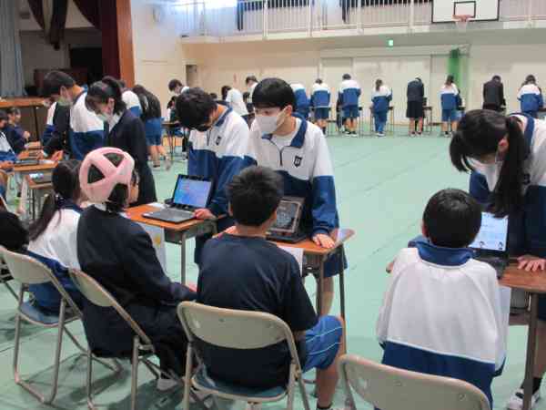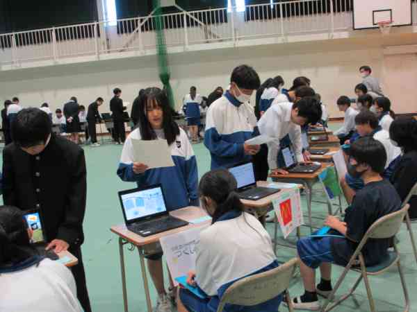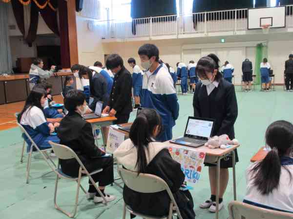 先週金曜日の2年生職業体験発表会です。 1年生も参加し、様々な事業所の仕事について学び合いました。 生徒が自主的に運営し、わかりやすく工夫された発表で、さすがは2年生といった内容でした。