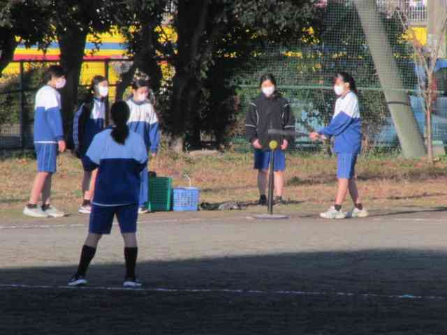 ベースボール型球技もいよいよゲーム形式です。 基本的なバット操作と走塁での攻撃、ボール操作と定位置での守備等によって攻防を学びます。
